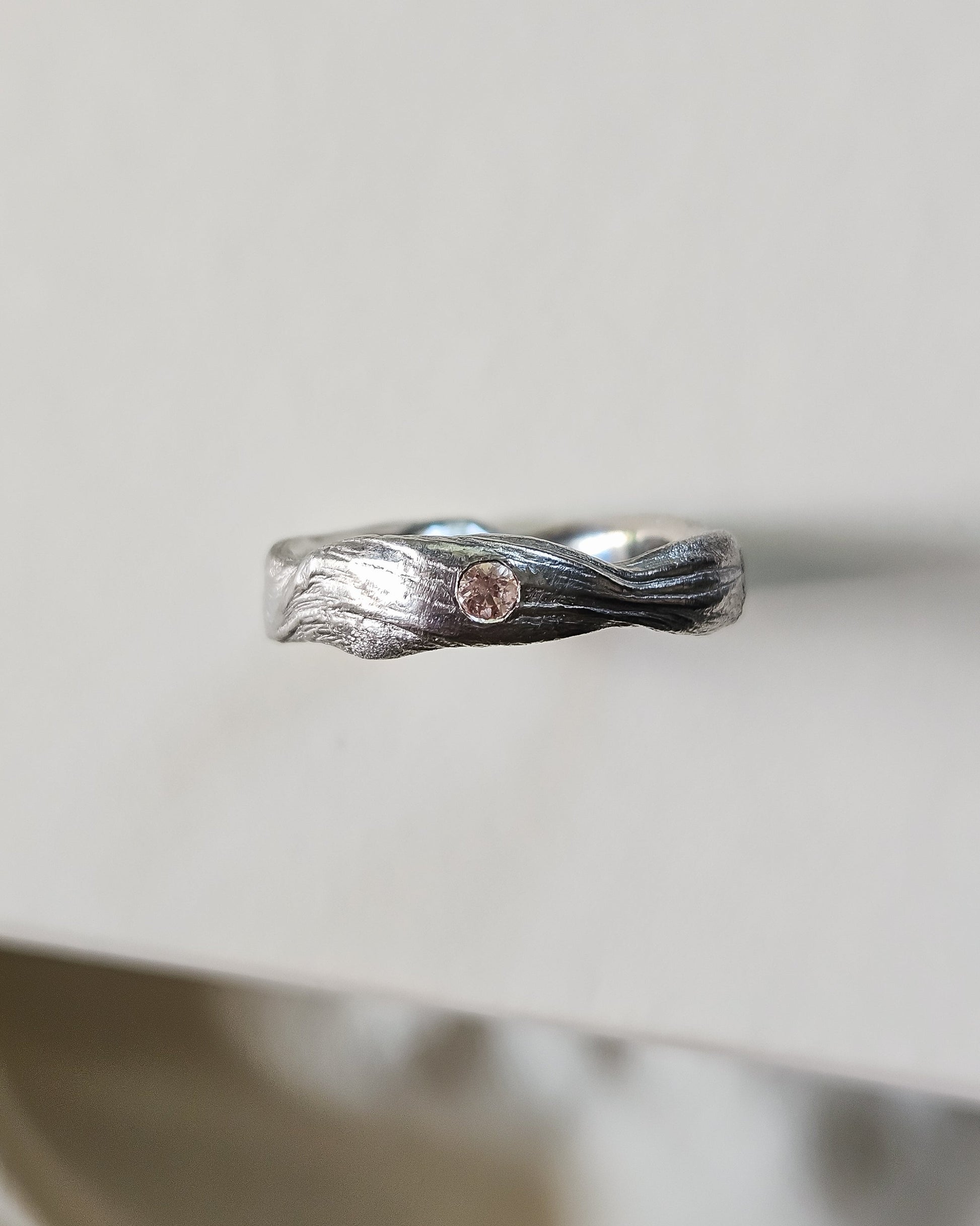 Materials: rhodium-plated sterling silver with a 3 mm diameter morganite