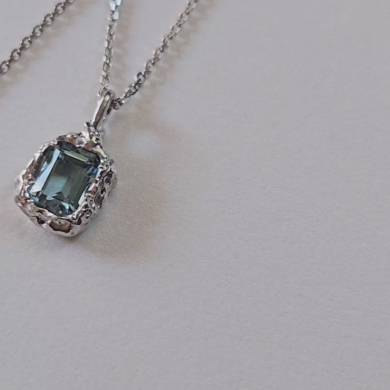 The Rhea pendant is created in a rustic and slightly asymmetrical setting. The final vibes of the pendant is determined by the stone it contains.
